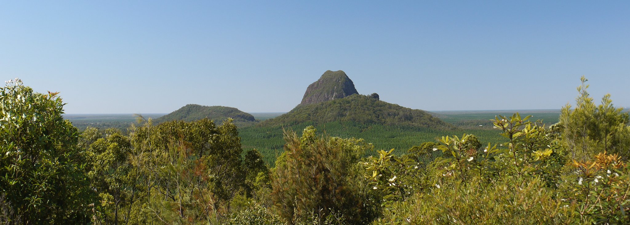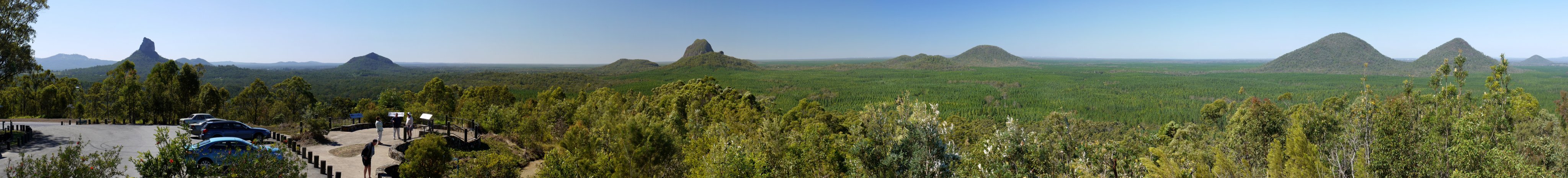 Rundblick über den Glashouse Mountains National Park