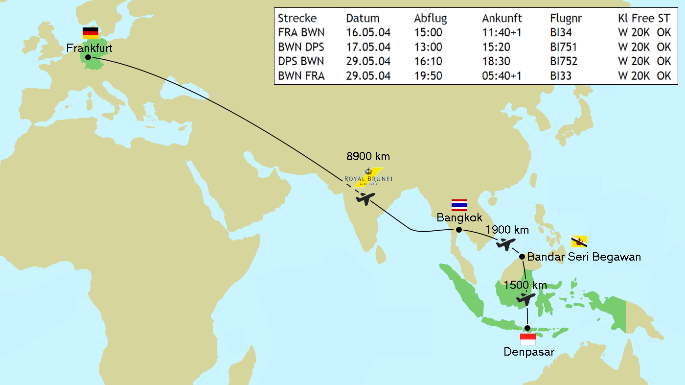 Flug mit Air Brunei Frankfurt - Bangkok - Brunei - Bali