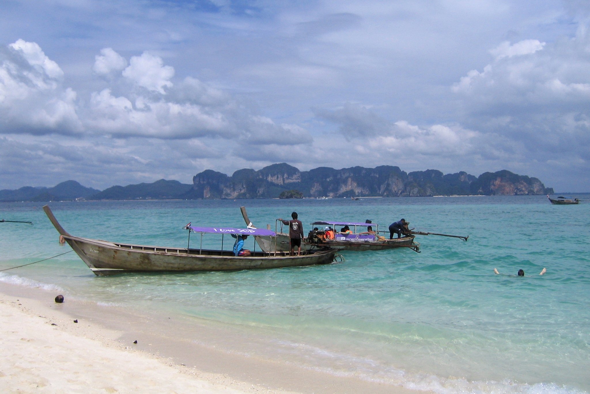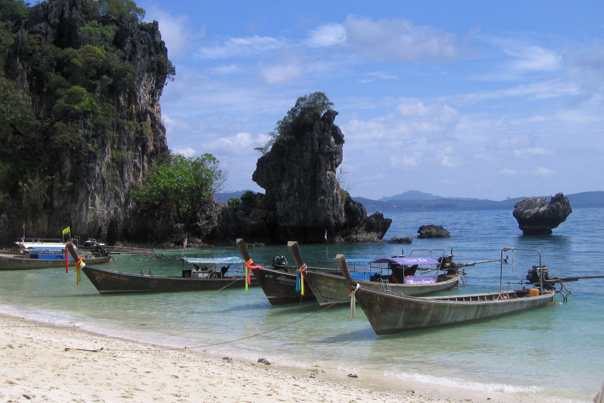 Nach 2 Flügen (Saigon-Bangkok-Krabi) erreichen wir Krabi gegen Abend. Wir fahren mit einem Taxi vom Flughafen ins Hotel Sunset  in Ao Nang. Wir verbringen dort 5 Tage direkt am Meer.