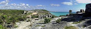 Fahrt ins 80 km entfernte Tulum an der Riviera Maya. Die Maya-Fundstätte liegt direkt am Meer und ist der touristisch meistbesuchte Ort des ganzen Landes.