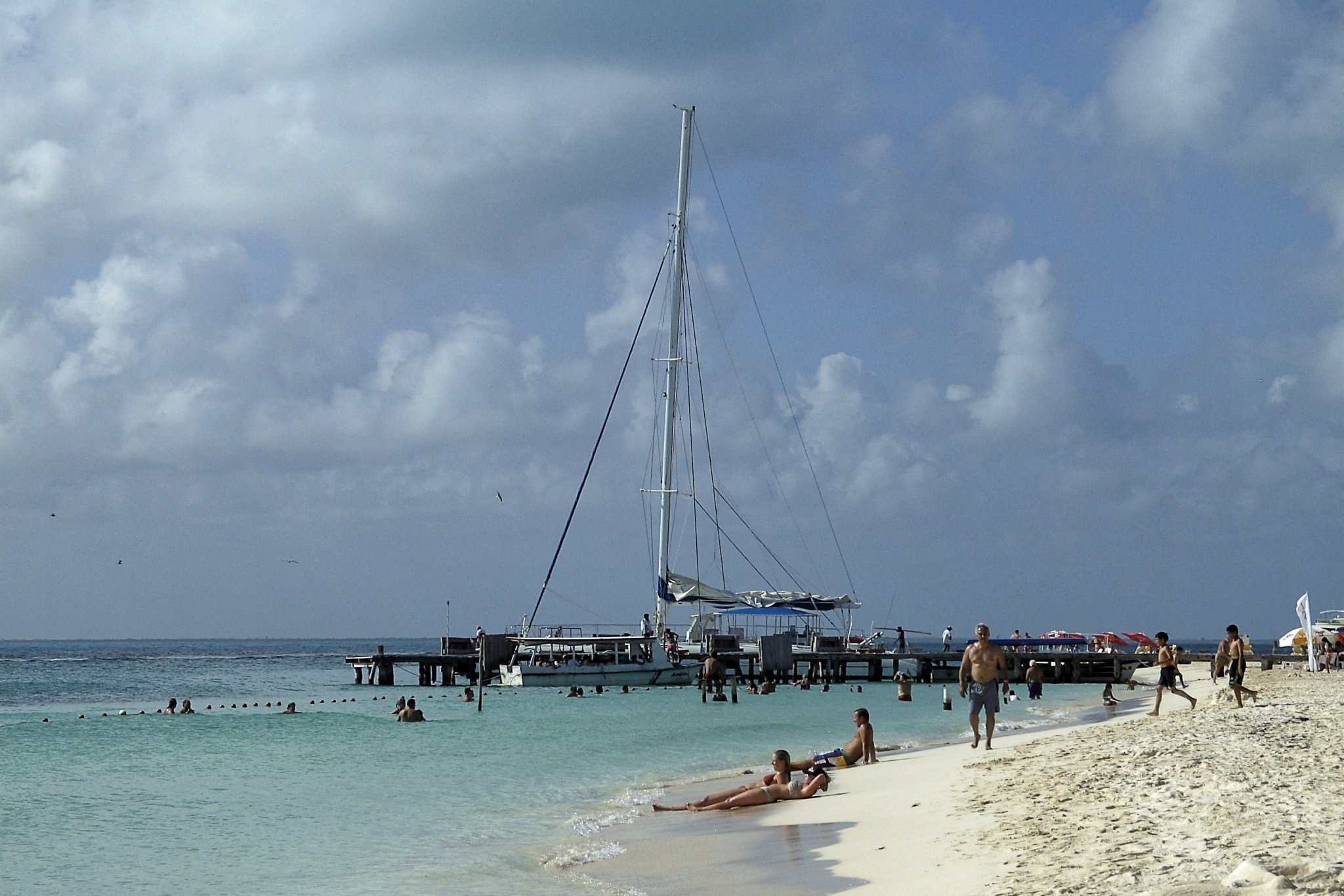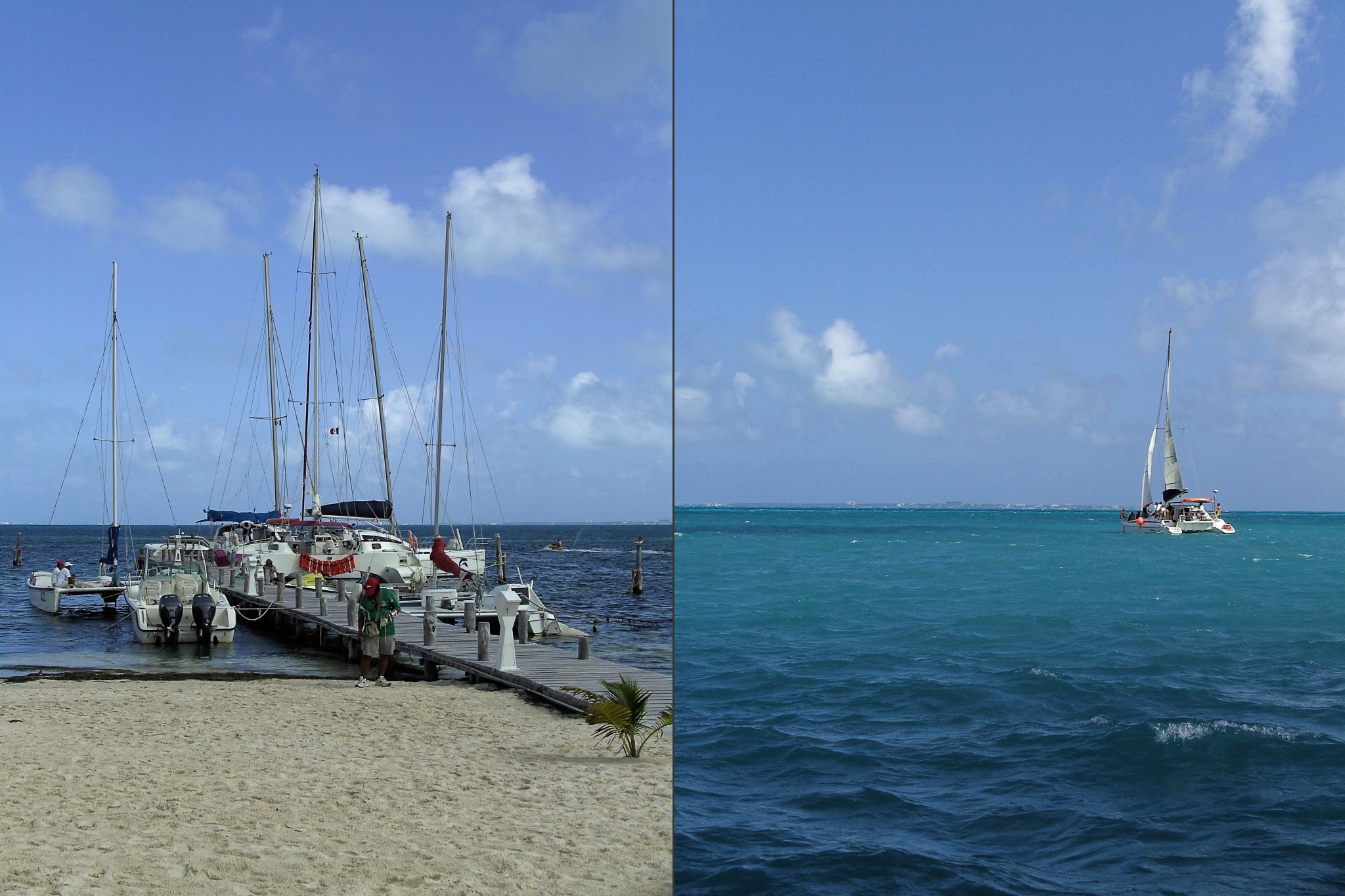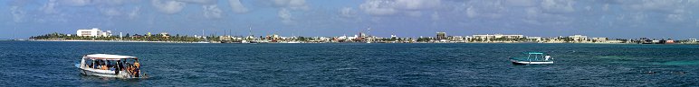 Fahrt mit dem Bus nach Cancun. Überfahrt mit einem Katamaran zur Isla Mujeres.