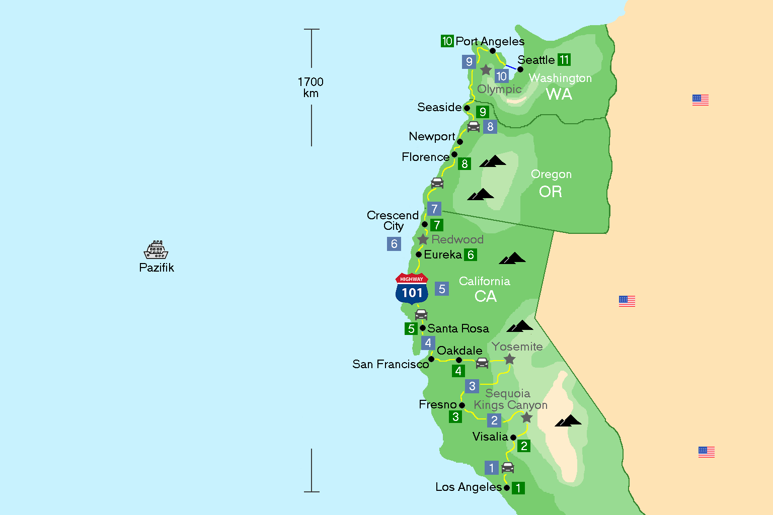 2 wöchige Reise von Los Angeles nach Seattle im Mai 2014