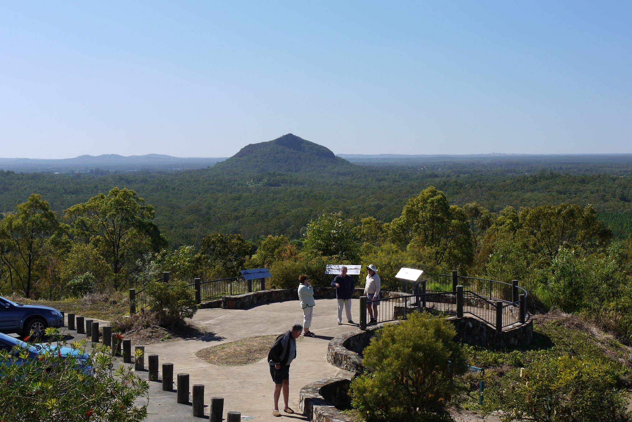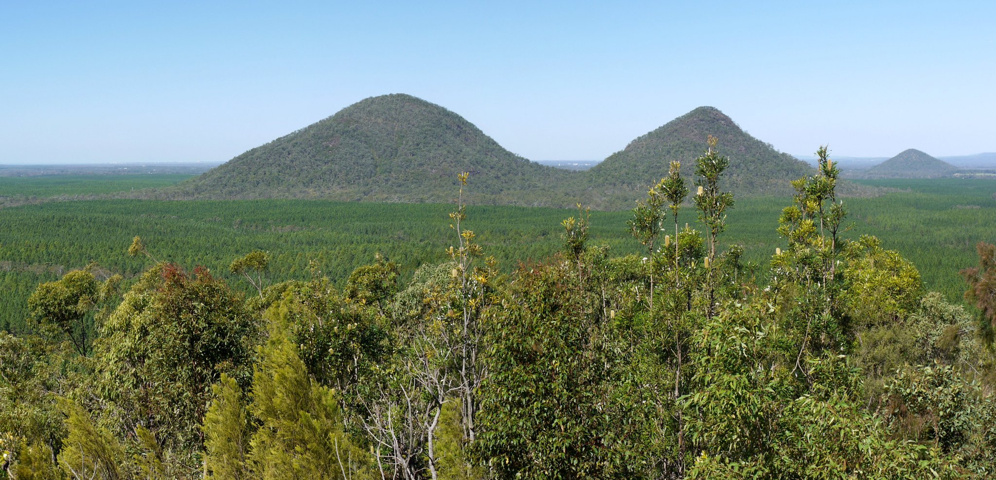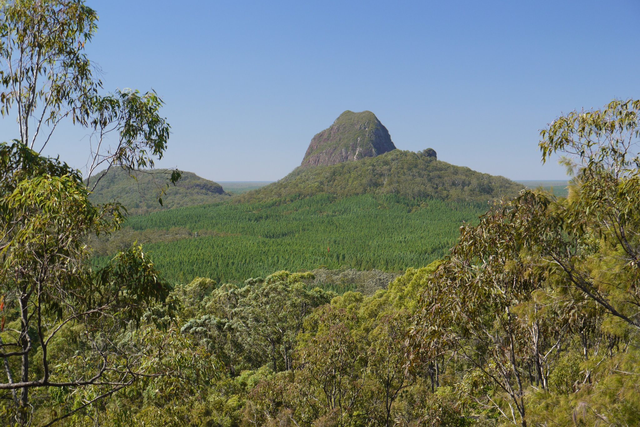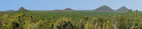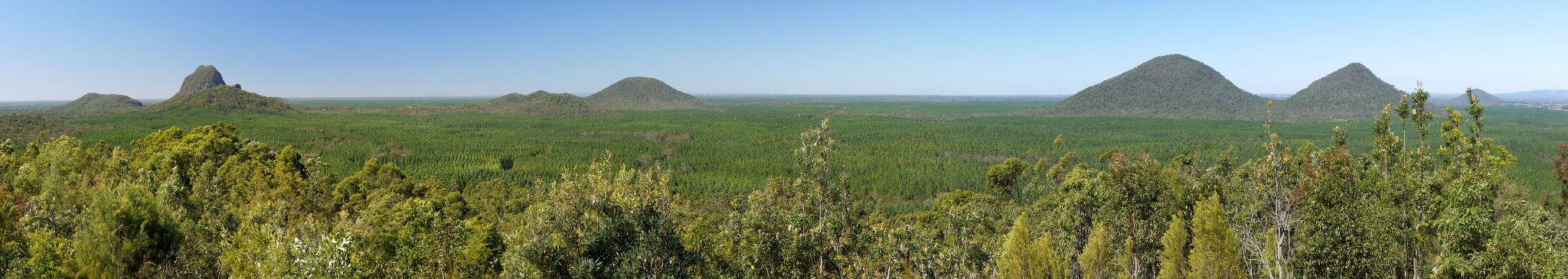 Rundblick über den Glashouse Mountains National Park