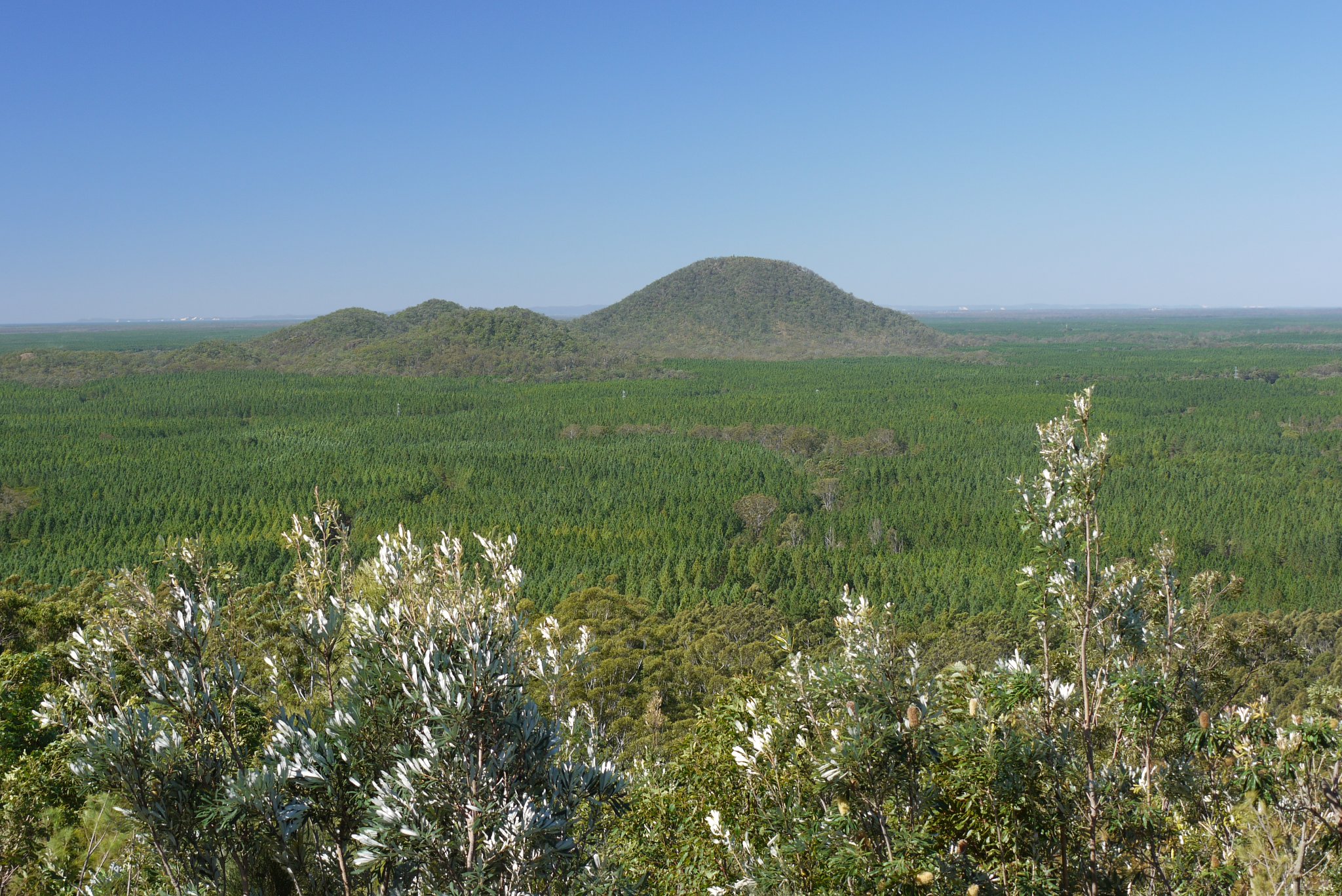 Am nächsten Morgen beginnt die erste Etappe mit dem Mietwagen von Brisbane über die Glashouse Mountains zur Hervey Bay (Fraser Island).