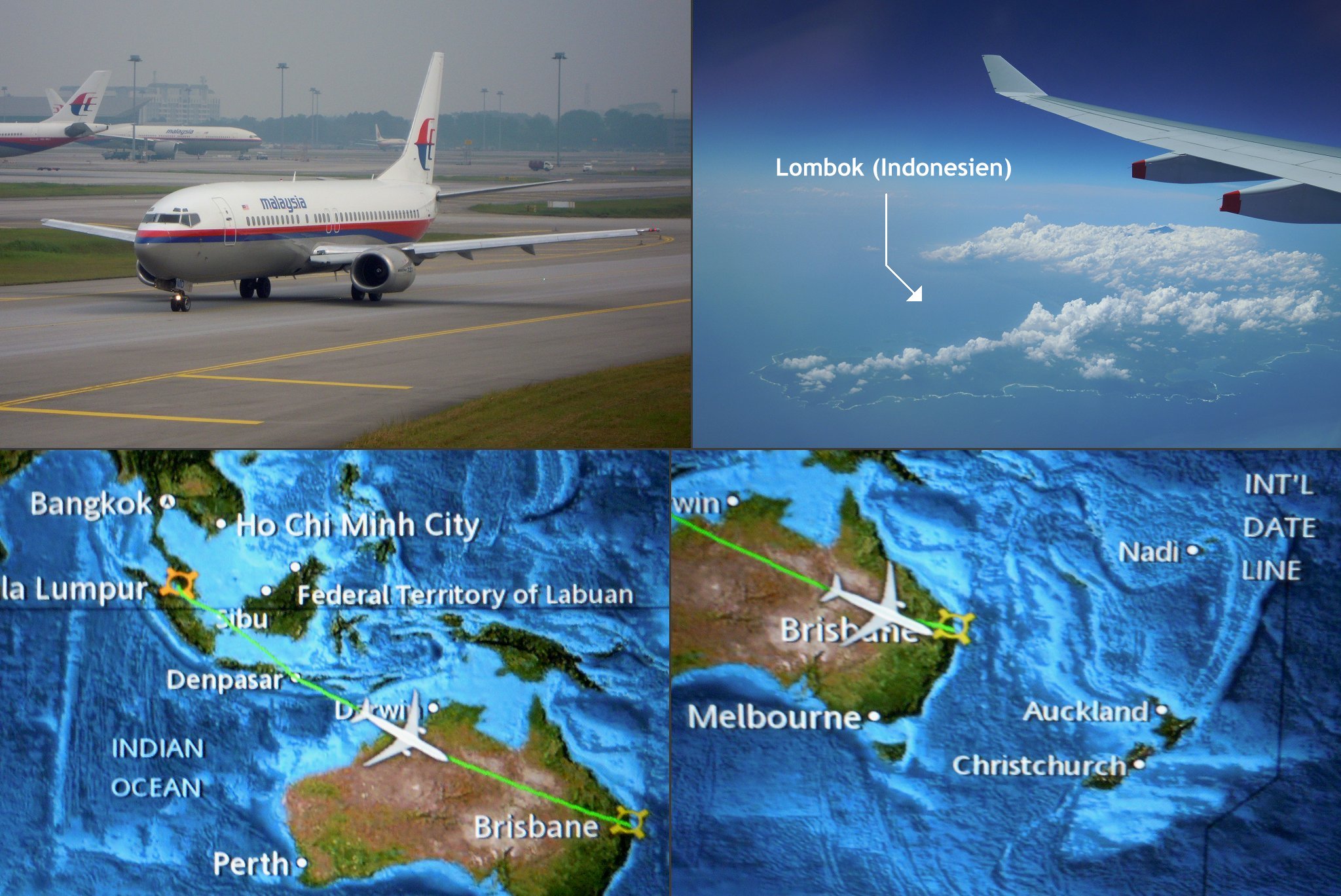 Wir fliegen am 09.05.2011 in 12 Stunden mit Malaysia Airlines nach Kuala Lumpur. Nach einer Übernachtung im Imperiana KL folgt der 8 stündige Weiterflug nach Brisbane.