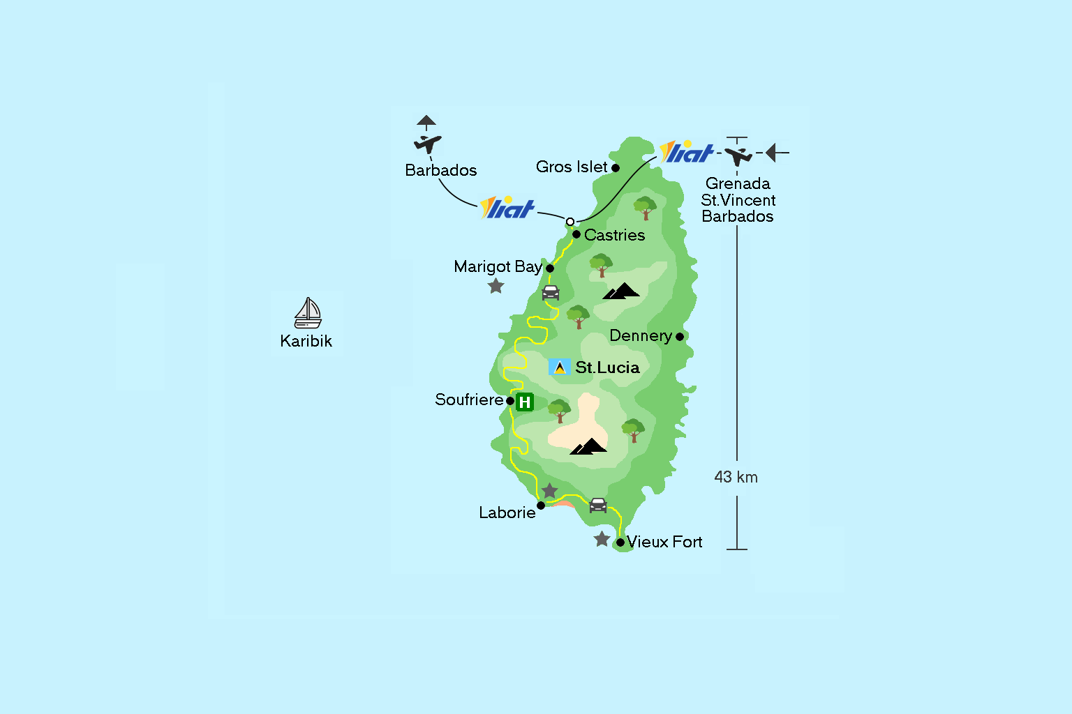 ATR 72-600 der Liat (Leeward Islands Air Transport Service) auf St. Vincent Für das Akronym LIAT haben sich in der karibischen Region witzig-zynische Bedeutungen herausgebildet, die Verspätungen, gestrichene Flüge sowie verlorengegangenes Gepäck thematisieren: