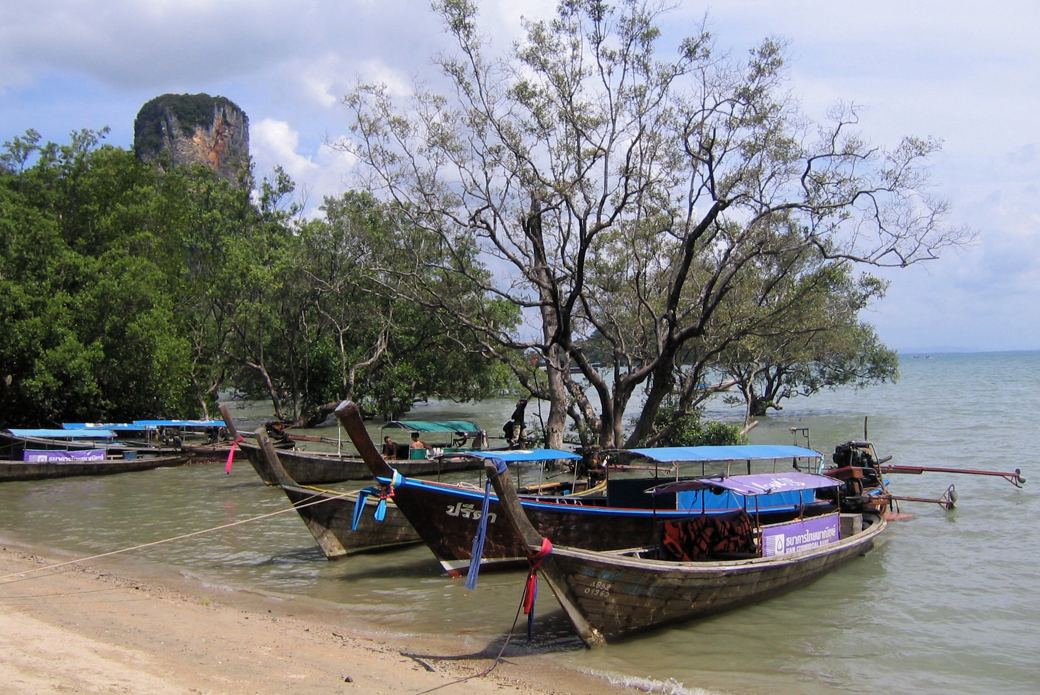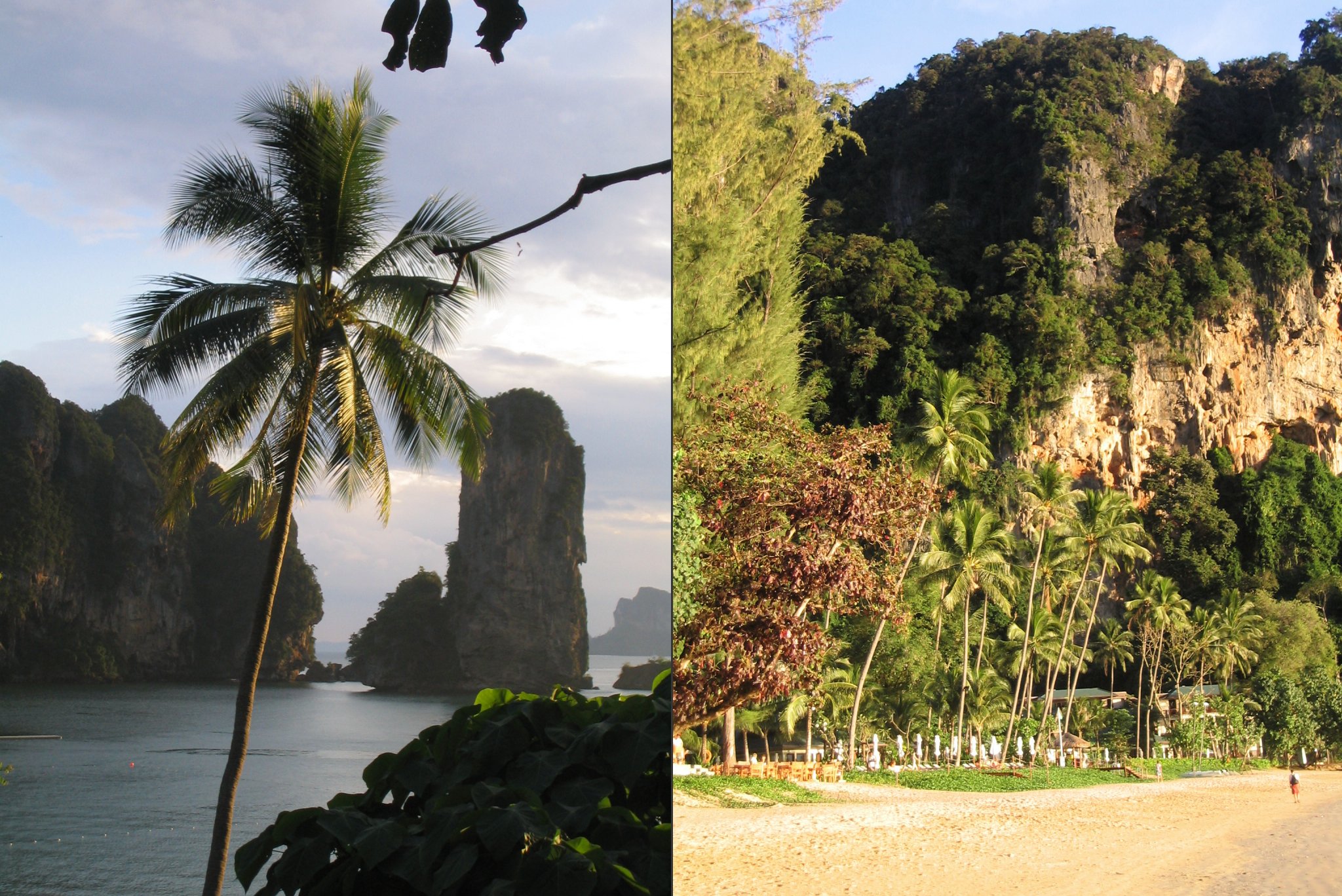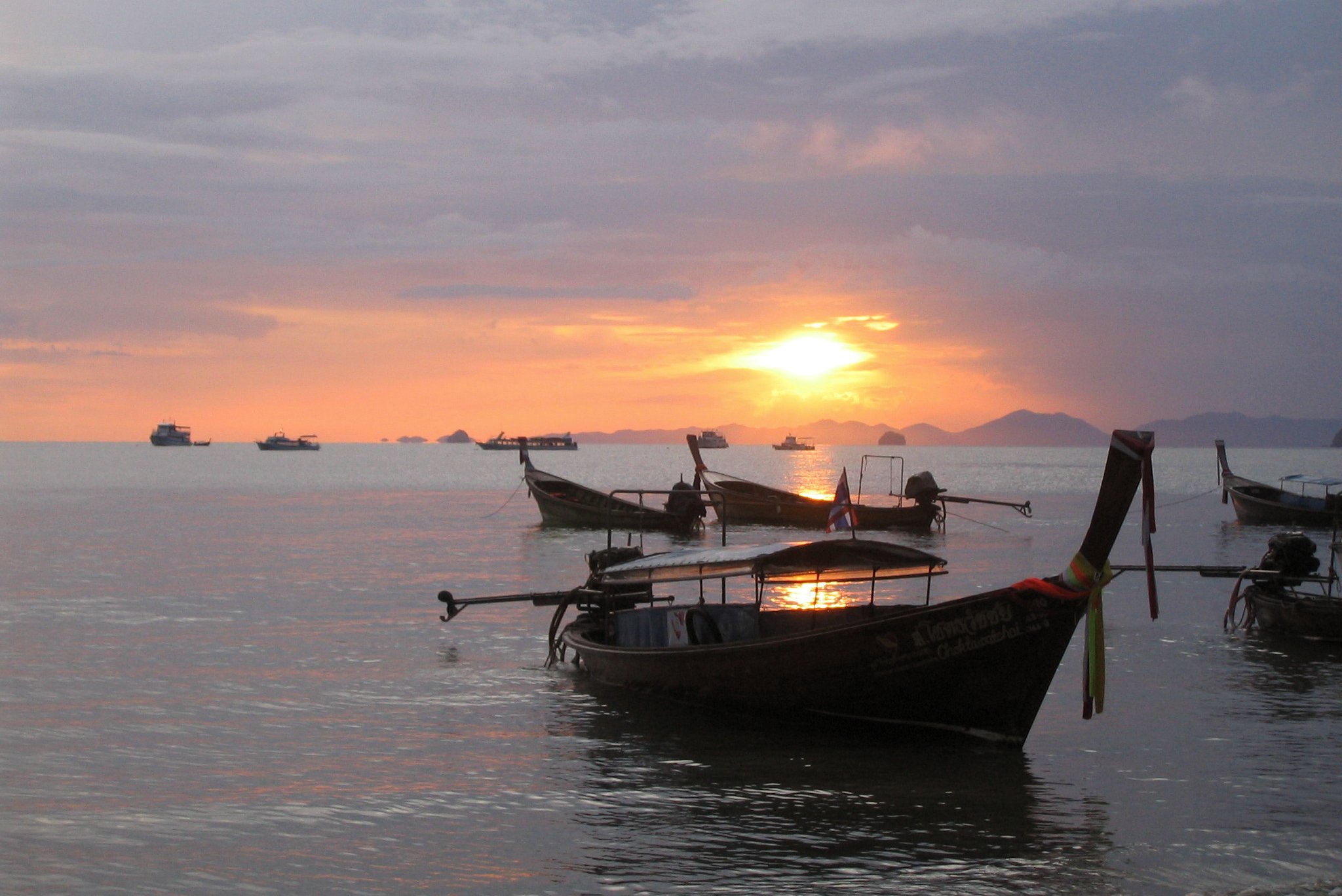 Nach 2 Flügen (Saigon-Bangkok-Krabi) erreichen wir Krabi gegen Abend. Wir fahren mit einem Taxi vom Flughafen ins Hotel Sunset  in Ao Nang. Wir verbringen dort 5 Tage direkt am Meer.