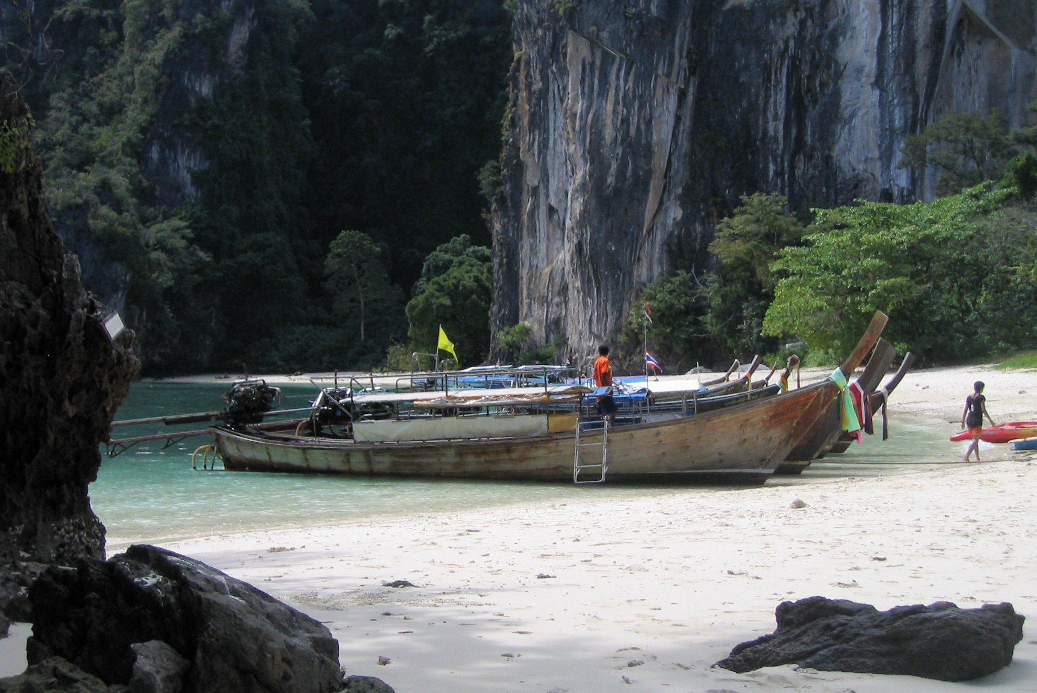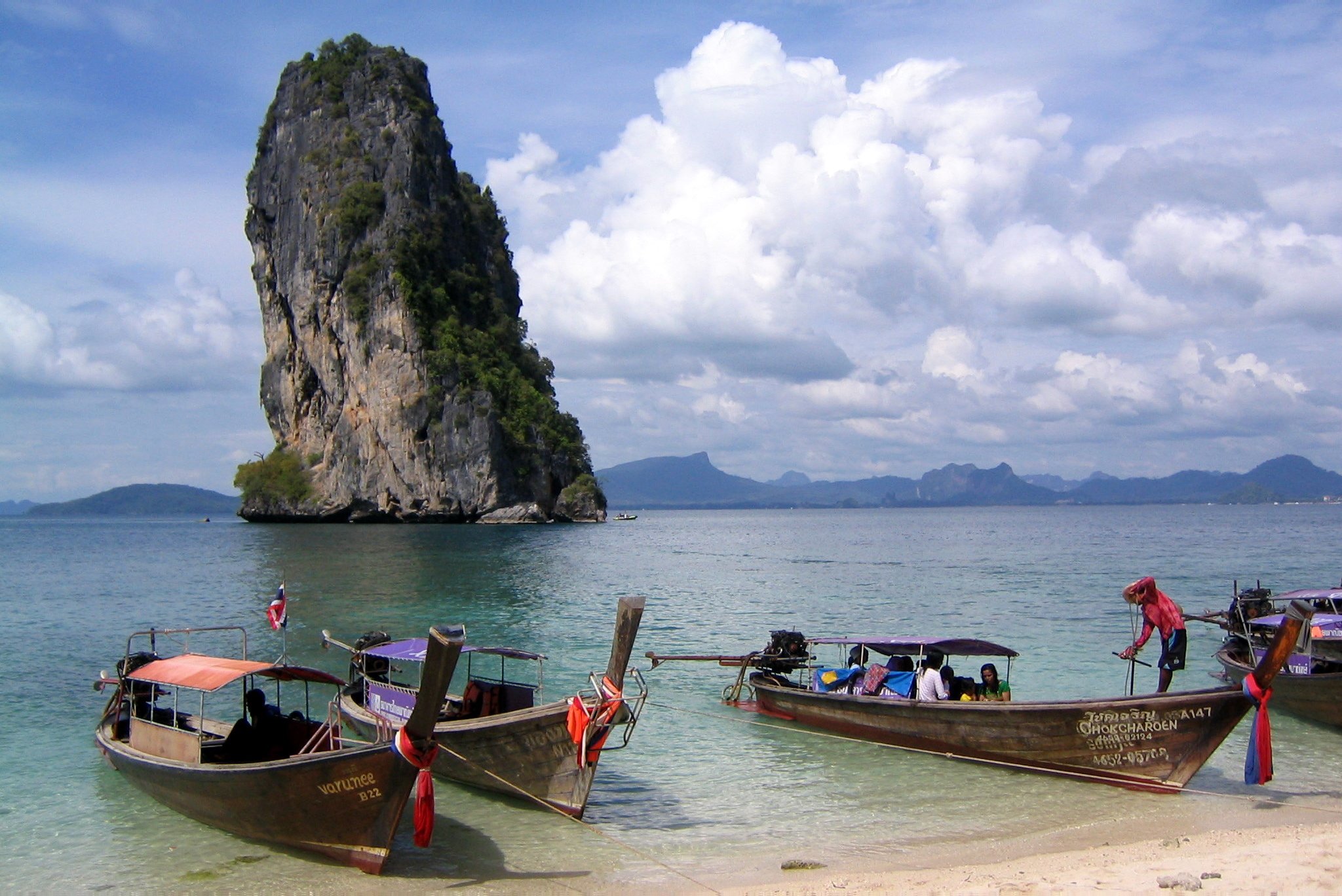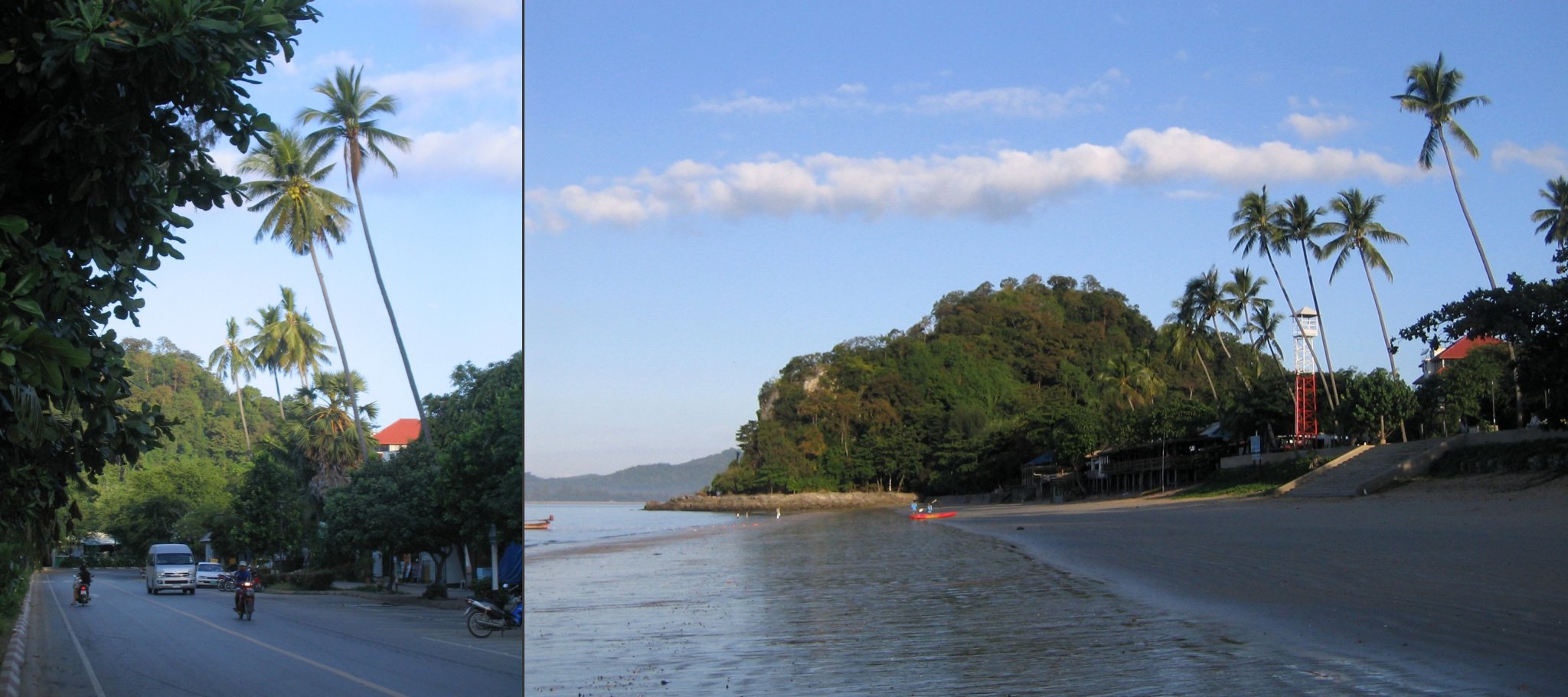 Nach 2 Flügen (Saigon-Bangkok-Krabi) erreichen wir Krabi gegen Abend. Wir fahren mit einem Taxi vom Flughafen ins Hotel Sunset  in Ao Nang. Wir verbringen dort 5 Tage direkt am Meer.