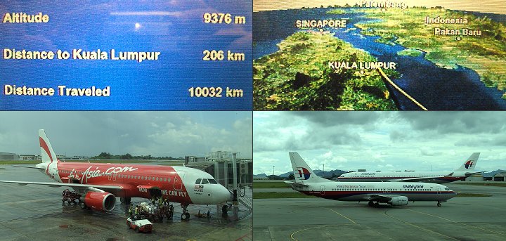 Flug mit Malaysia Airlines nach Kuala Lumpur, weiter mit Air Asia nach Kuching
