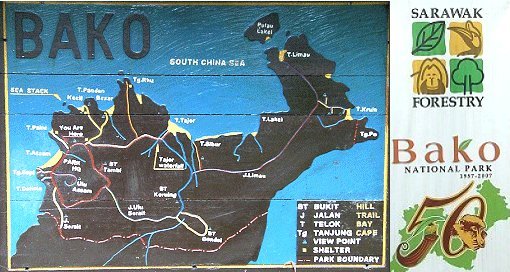 Der Bako Nationalpark ist 2742 Hektar groß und liegt an der Ostküste von Borneo in der Nähe von Kuching. Im Park befinden sich die verscheidensten Pflanzen und Tiere.